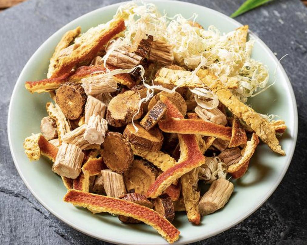 橘皮竹茹汤由橘皮(100g)、竹茹(30g)、生姜(110g)、大枣(90g)、甘草(69g)和人参(13.8g)六味药材组成。