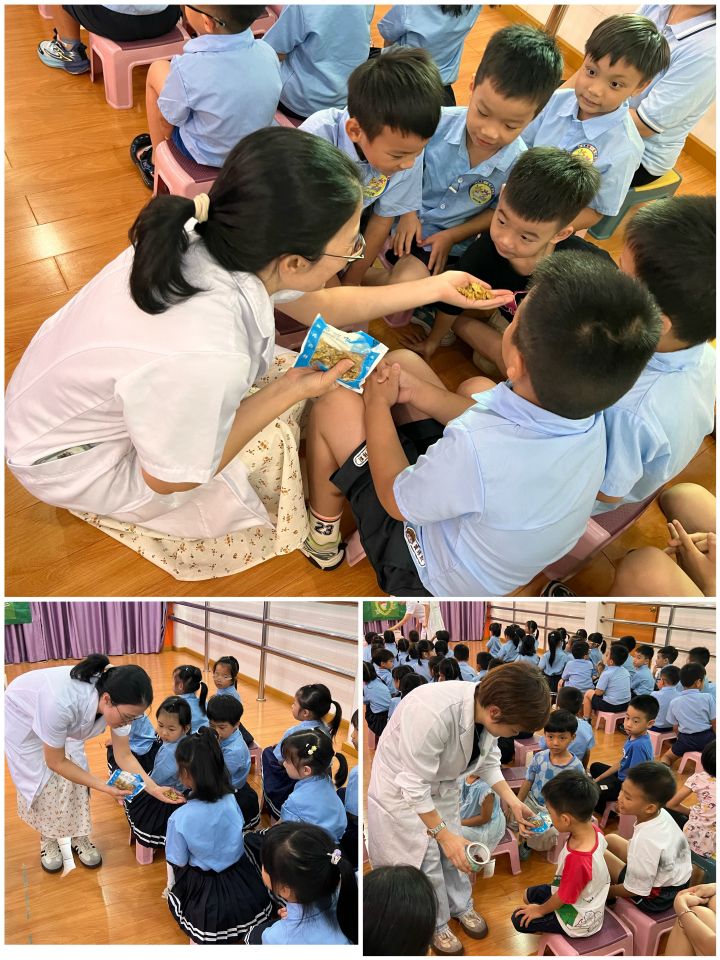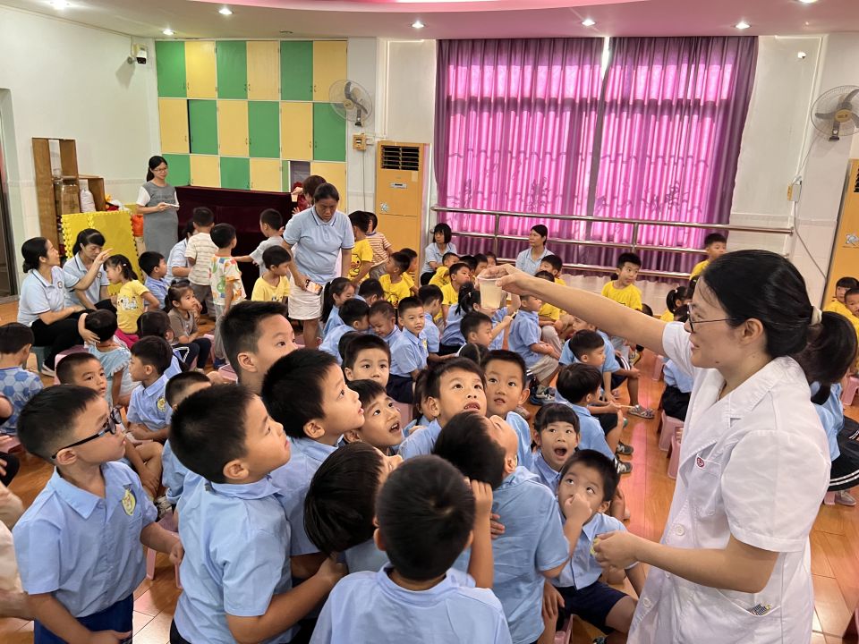 9月11日、19日,工作站分别走进杏坛镇基础幼儿园与南朗幼儿园,开展“安全用药‘童’心守护,中医药文化“潮”传承”主题活动。药师志愿者通过古今中医药故事分享、中药实物展示、药物相互作用实验、泡腾片正确使用演示等互动环节,让孩子们在“看、闻、摸、试”中建立安全用药意识,激发对中医药文化的兴趣。活动现场气氛活跃,孩子们踊跃参与,在欢声笑语中牢记“药品不是糖果”、“外用药、泡腾片等特殊药物正确使用”等关键知识。