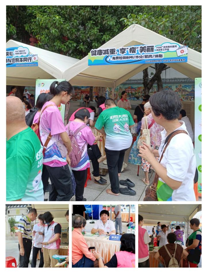 广州市胸科医院的向日葵药师们打造的 “健康减重,享‘瘦’美丽” 摊位,凭借贴近民生的主题与耐心细致的志愿服务,成为全场人气焦点 —— 摊位刚开放 10 分钟,前来测体脂、体重的市民就排起了队伍。“我试过好多方法减重都没用,还总头晕,您能帮我看看吗?” 家住附近的刘阿姨攥着检测数据挤到台前,钟洪兰主任,一边细致询问她的饮食、运动习惯与基础疾病,一边用彩色笔在“减重风险提示卡”上标注 “高血压患者减重忌快速节食”的重点;面对年轻上班族“饮食不规率不健康”的问题,志愿药师们拿出自制的“7天健康饮食指南” ,给出合理的饮食搭配与饮食顺序帮助他们重塑减重信心。