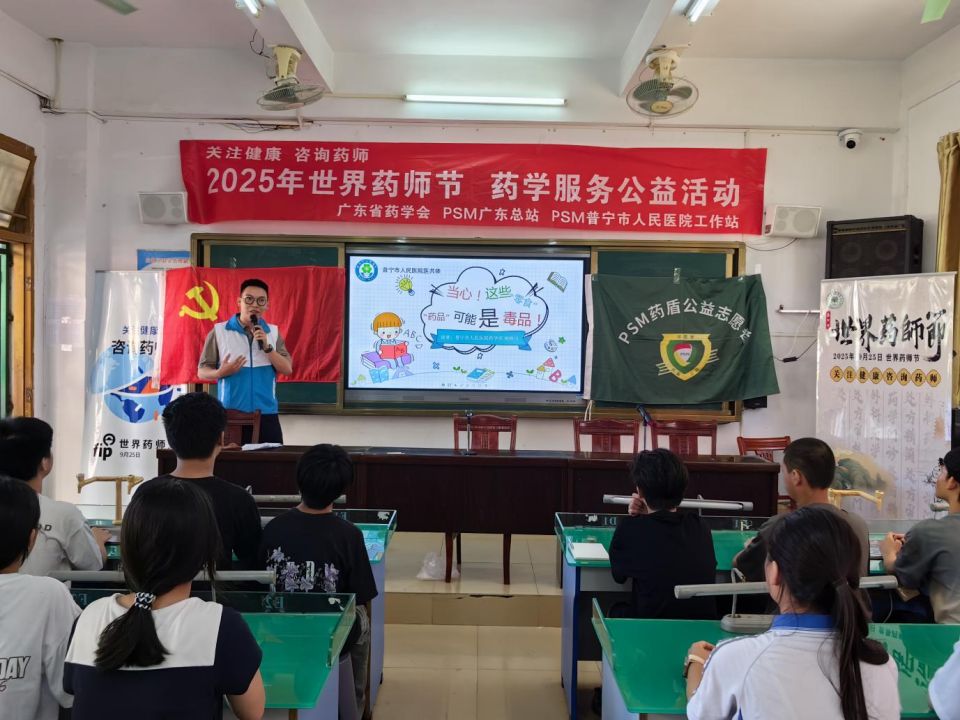 在普宁,药师们把课堂搬进了校园。9月9日清晨,PSM 普宁市人民医院工作站的4 名药师带着精心制作的用药科普手册,走进普宁市城西中学。面对120名初中生,他们没有照本宣科,而是用“感冒了能不能随便吃抗生素”“退烧药怎么吃才安全” 等贴近学生生活的问题开场,再通过漫画、案例拆解用药误区。
