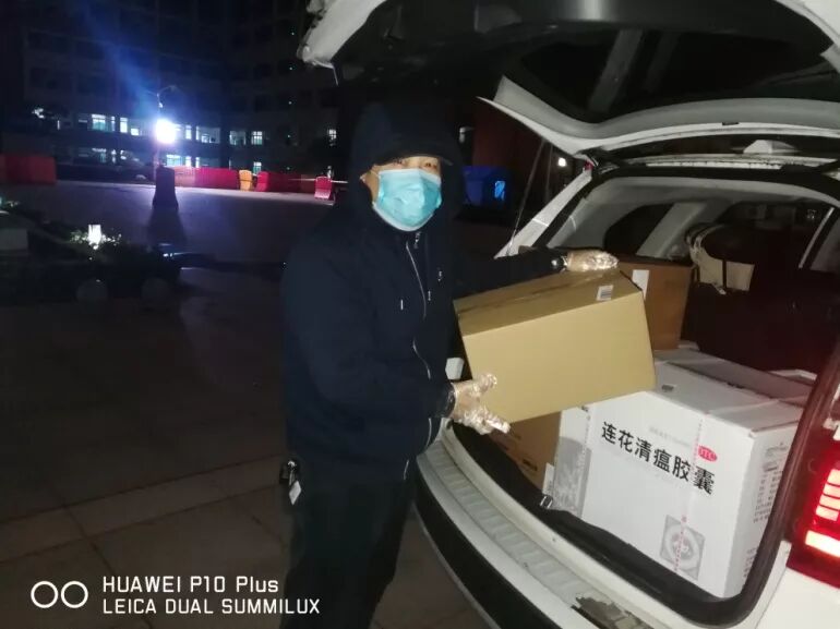 杨仁勤药师夜间送药到石牌岭职业高中方舱医院