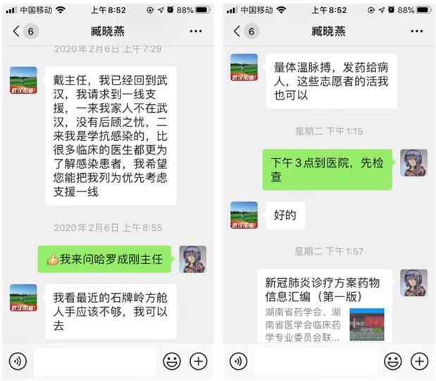 当医院根据疫情需求,需要成立湖北省肿瘤医院医疗队时,药学部人员积极踊跃报名,并通过微信、电话等方式表明抗疫决心。“我请求到一线支援,我的家人不在武汉,没有后顾之忧,”“希望把我列为优先考虑”……在国家需要时,我们的药师们大多选择了疫情更为严重的一线。